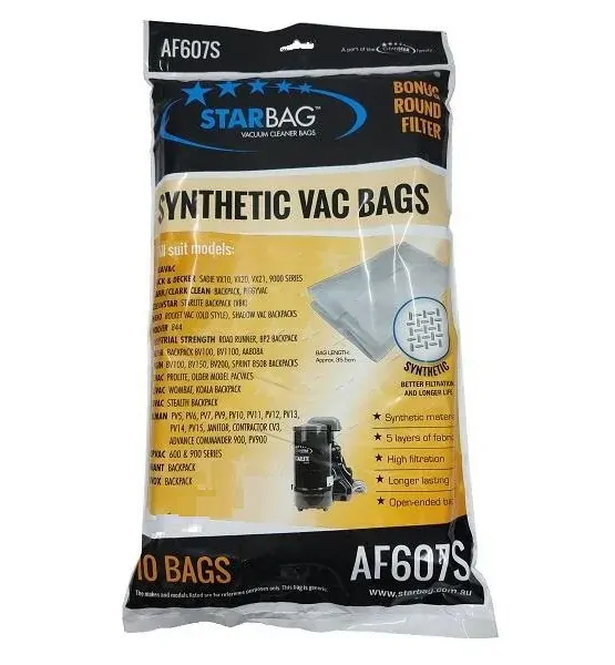 The Cleanstar AF607S Synthetic Fabric Vacuum Bags are a high-quality and durable option for your vacuum cleaner. These synthetic bags are designed to effectively capture dust, dirt, and debris, ensuring a clean and healthy home environment. With their superior filtration and long-lasting construction, the AF607S bags provide reliable performance and value.
